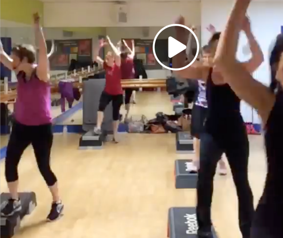 Whether I'm jumping around in a high cardio class (like the one in this image) or whether I'm teaching a much more gentle, low impact level class like the ones I teach at MOVEDtoMOVEOnline, you won't find me encouraging in-class competition, having to do everything at a 'top level', or even having to 'get it right'! I respect that everyone has their own particular limits and that everyone's body is different.